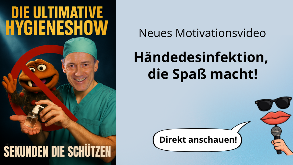 Motivation für die Personalschulung gesucht? Händedesinfektion gehört zum Alltag und wird oft nebenbei gemacht. Doch mit Vinzenz dem InfluenzA und Dr. Mic wird daraus jetzt ein echter Hingucker!