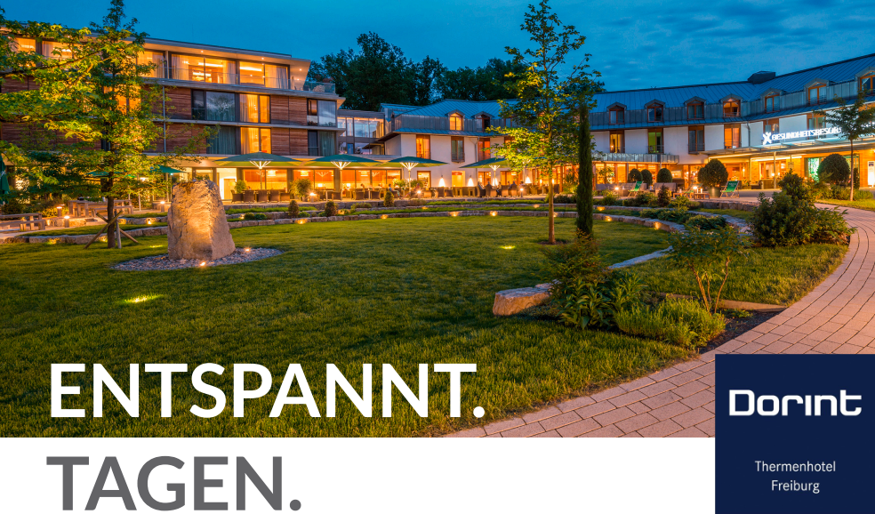 Das Dorint Thermenhotel Freiburg bietet unseren Kongressteilnehmern ein spezielles Kongressarrangement „ENTSPANNT. TAGEN.“ an. Bitte entnehmen Sie den Buchungscode und weitere Informationen aus der beigefügten PDF.